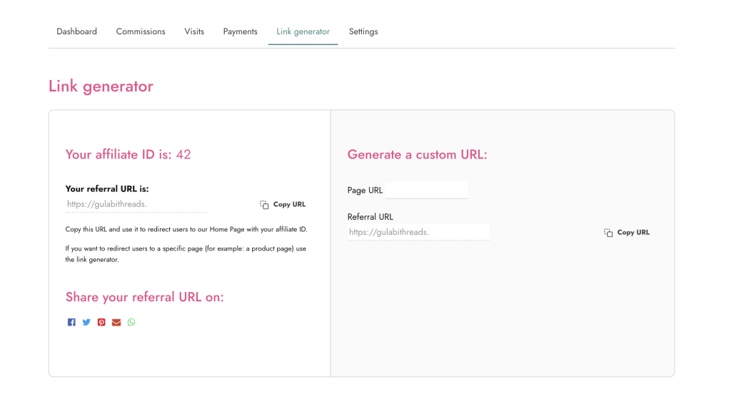 The Gulabi Threads Associate Program helps House Wives, College going students, influencers, content creators, publishers and bloggers monetize through their traffic. With our products available on our website, associates use easy link-building tools to direct their audience to their recommendations, and earn from qualifying purchases.