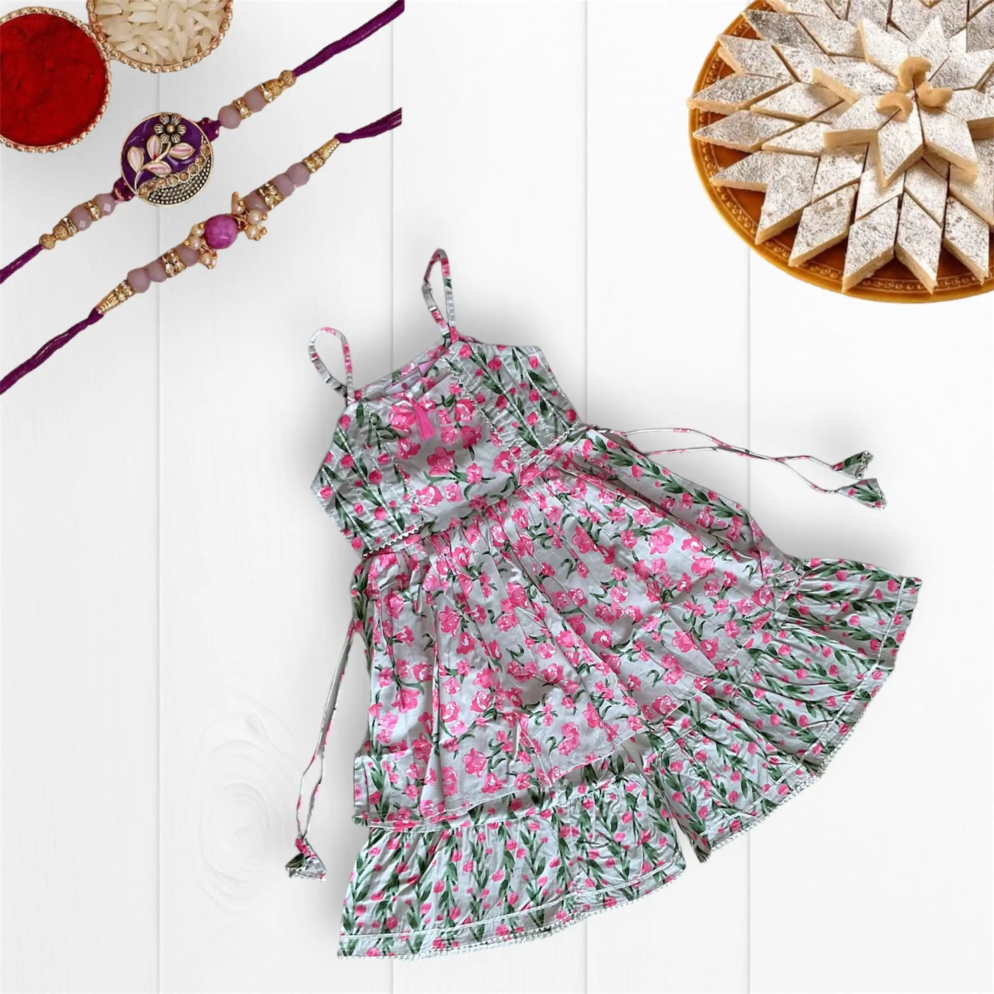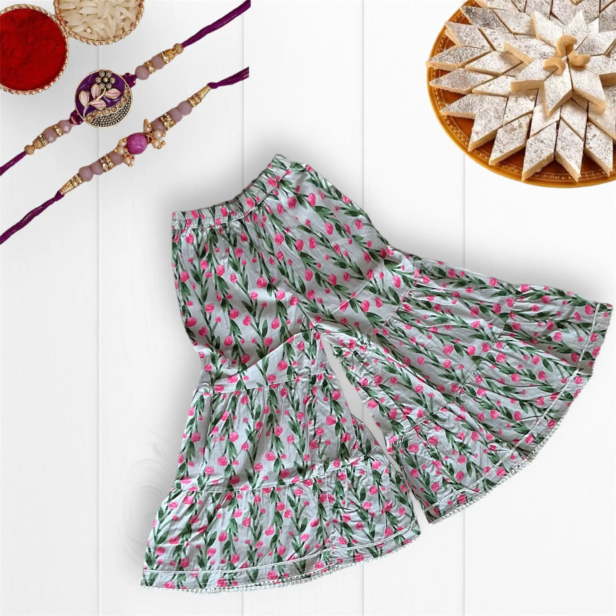 Amp up your little girl’s wardrobe with our royal Floralsharara set! Perfect for ethnic dressing, she’ll feel like a princess in this quirky and stylish outfit! Stand out from the crowd in style with this must-have addition to your wardrobe. (Trust us, you’ll look amazing!)