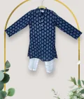 Little kings Navy Blue Royal White Motiff Kurta Set
